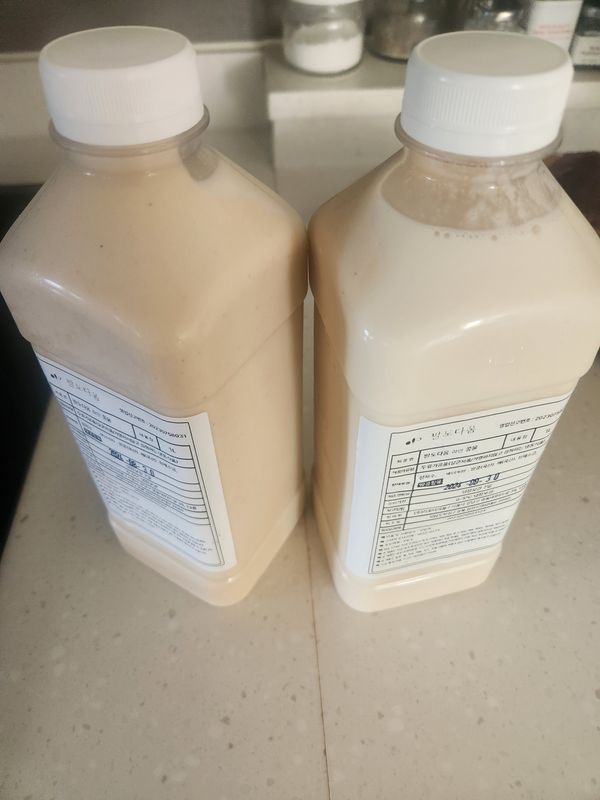 일반 아이스팩이 아닌 생수를 얼려서 보내주셔서 더 감동이었어요. 하나를 해동해서 조금 맛 보았는데 굉장히 걸쭉해서 물을 약간 타서 먹음 목넘김이 훨 좋을듯요. 콩물은 꼬숩고 맛있네요.잘 먹겠습니다.