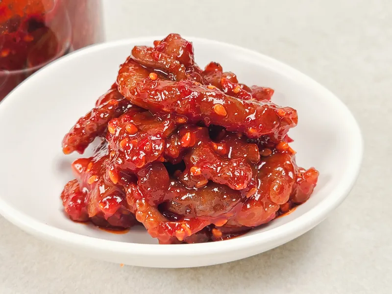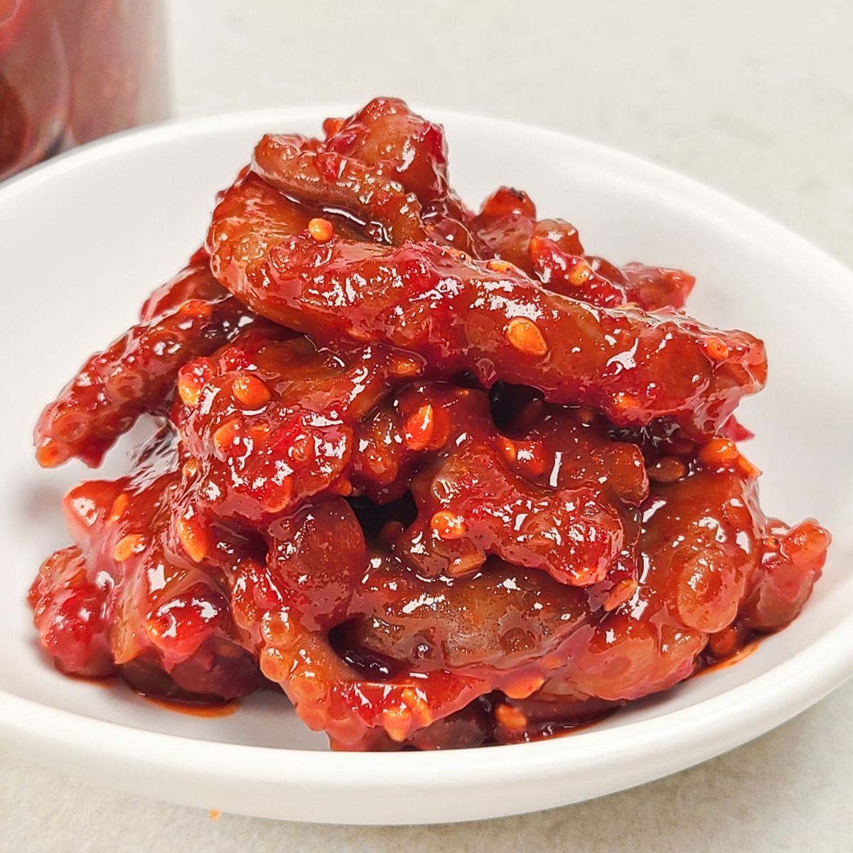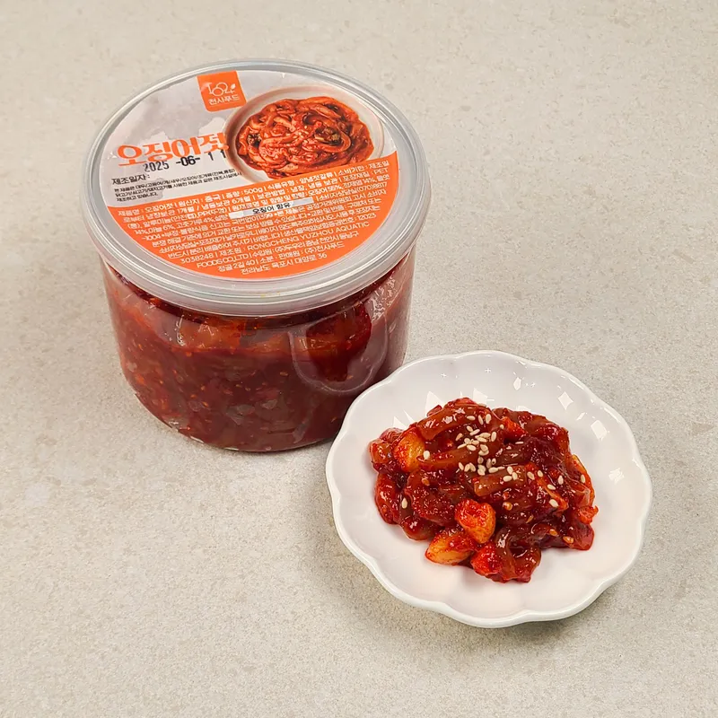 신선한 오징어와 낙지를 천천히 숙성해 잡내 없이 깔끔하고 깊은 풍미를 살렸어요. 입맛 없을 때 밥이랑 같이 먹으면 한 공기 뚝딱! 짜지 않아 더 맛있는 밥도둑이에요.