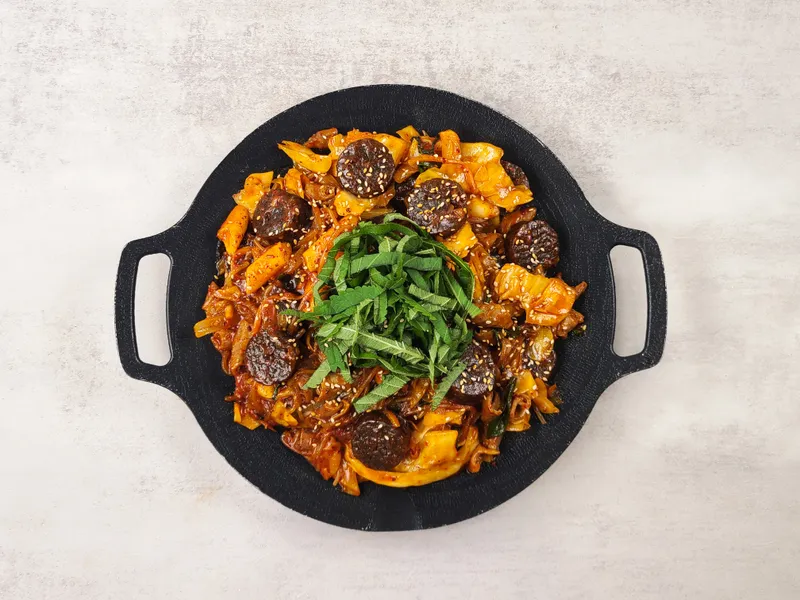 탱글탱글한 순대와 잡내 없이 고소한 곱창 그리고 신선한 야채까지 넉넉히 넣었습니다. 진하게 배어든 양념은 입맛 도는 매콤함을 선사하죠. 들깨가루와 깻잎을 넣어 볶아 드시면 적당히 매콤해 술안주로 드시기에도 제격이랍니다.