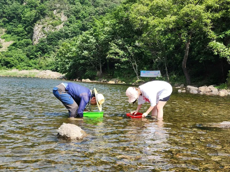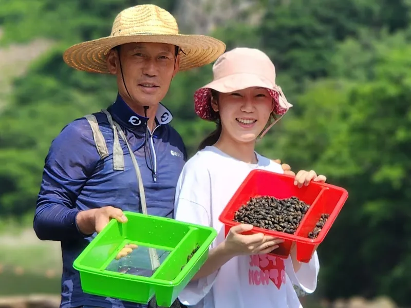 충청북도 보은 속리산의 1급수 계곡에서 건강하고 깨끗한 다슬기를 직접 잡고 있습니다.