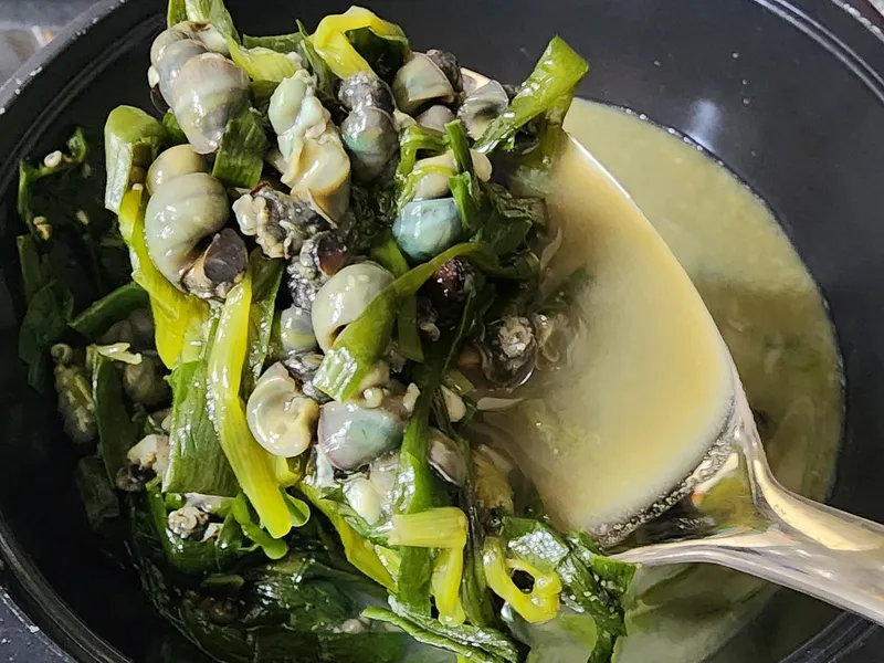 드시다가 느껴지는 약간의 지글거리는 식감은 모래가 아닌 다슬기 알이며, 다슬기 알은 영양 가득한 칼슘 덩어리로 끝까지 잘 손질이 되었다는 것을 의미하기도 합니다. 안심하고 드세요!