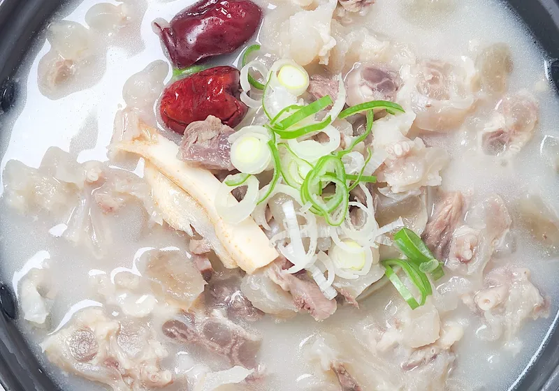 깊고 깔끔한 국물 맛이 특징인 사골 스지탕이에요. 시원 담백한 국물은 감칠맛이 가득해 누구나 맛있게 즐길 수 있습니다. 취향에 따라 채소나 소면을 추가해 먹어도 잘 어울려요.
