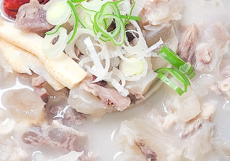 사골 스지탕은 쫄깃하면서도 입에서 녹듯이 부드러운 식감이 특징이에요. 쫀득하고 탱글탱글한 스지가 입안에서 감칠맛을 더해줍니다. 담백하고 고소한 맛이 느껴져 자꾸만 손이 가요.