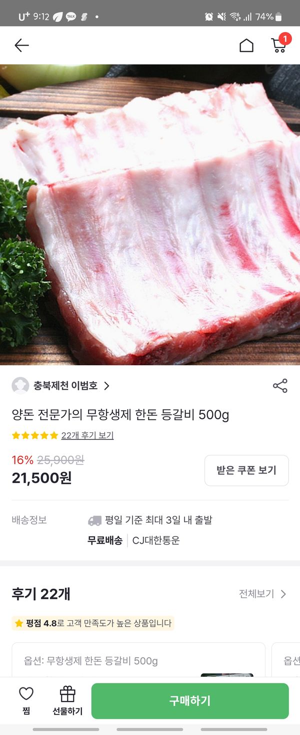 받자마자 김치찜을 맛있게 해먹었습니다. 쫀쫀한 식감이 신선한 고기는 다른가 싶었어요. 좋아요