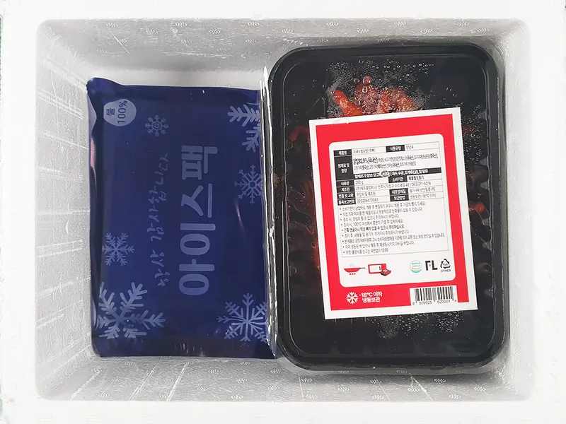 상품은 냉동 상태로 아이스 박스에 아이스 팩을 동봉하여 보내드립니다.
