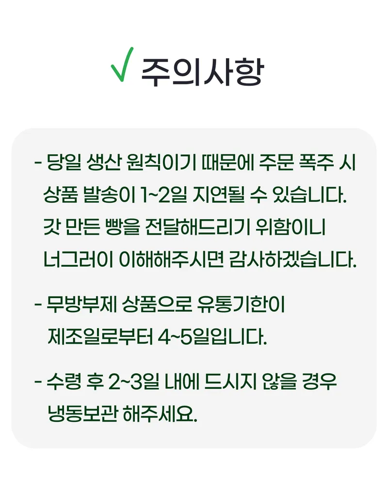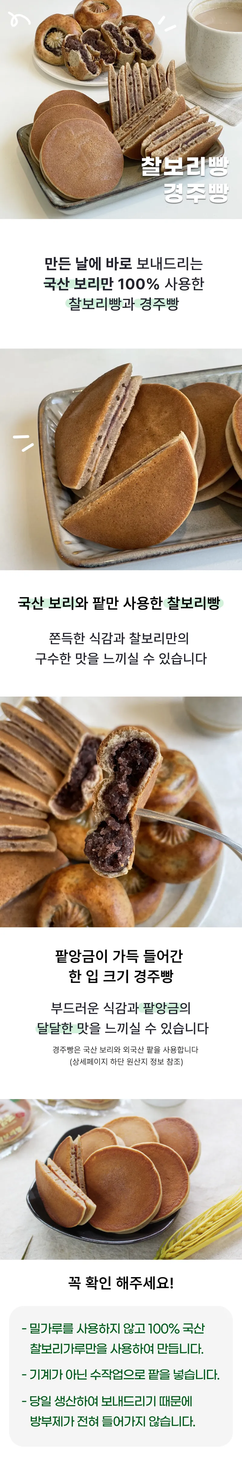좋은 재료로 갓 만든 빵을 전달해드리기 위해, 국산 보리만을 사용하고 당일 생산하여 보내드립니다 ^^ 지역을 대표하는 특산품으로 자부심을 가지고 만듭니다^^