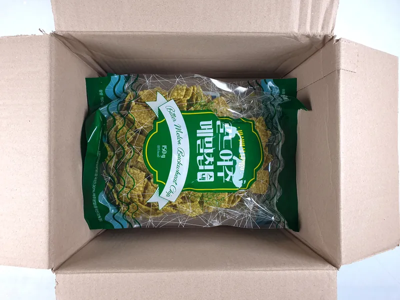 여주와 메밀의 영양을 그대로 담아 만든 건강한 칩이에요. 신선한 재료 그대로 만들어 영양가 있고 바삭한 식감이 특징입니다.