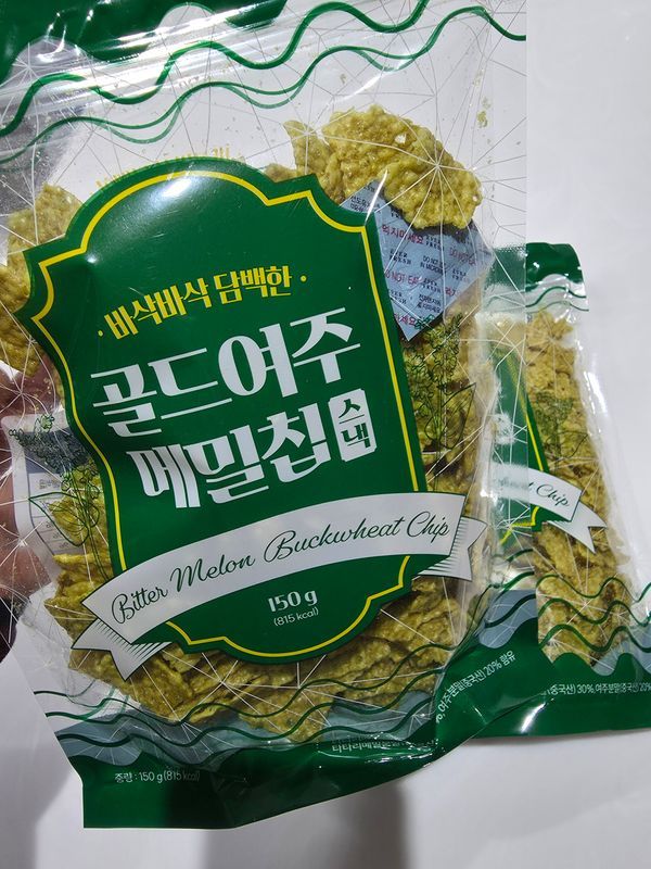 칩스나 과자같은거 땡길 때 먹어주면 해소 됩니당! 바삭바삭 시중 과자처럼 식감 좋고 여주맛 안 느껴져서 거부감 안들어요! 일반 옥수수 칩 먹는 식감과 비슷하고 맛도 일반 과자 맛이에요. 메밀과 여주 함량이 높아서 죄책감이 덜하네요.