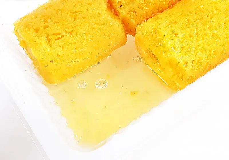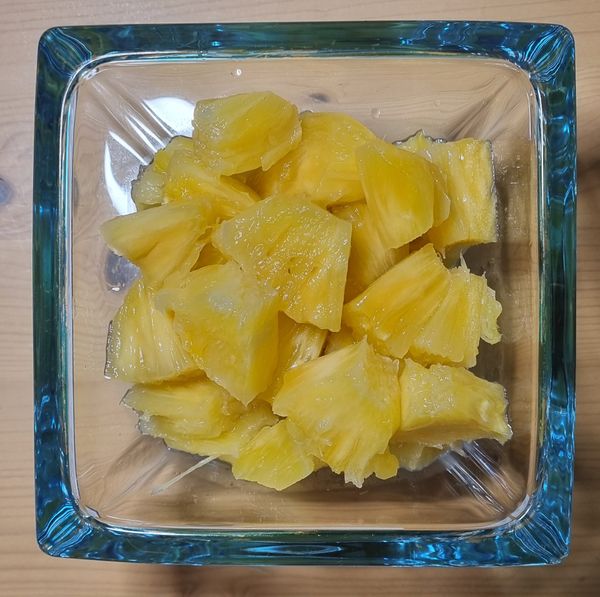 두꺼운 파인애플 껍질은 저희가 깔끔하게 손질해 드립니다. 동그란 모양 그대로 잘라 급랭해 신선한 상태를 그대로 머금고 있어요. 냉장고에 시원하게 보관하셨다가 간편하게 꺼내 바로 믹서기로 투하! 다양한 과일과 함께 갈아드셔도 건강주스 완성입니다.