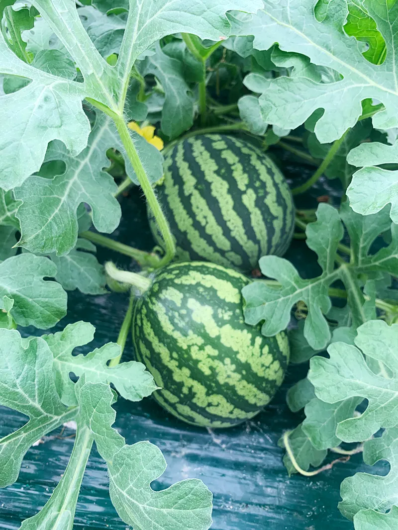 기온이 떨어지는 저녁에는 온도 유지를 위해 이불을 덮어주고 아침에 다시 이불을 걷어주는 작업을 매일 반복해서 당도를 최고로 끌어올렸습니다. 수정 후 50-60일 정도 숙기를 꽉 채워서 수박이 가장 맛있어질 때 수확합니다.