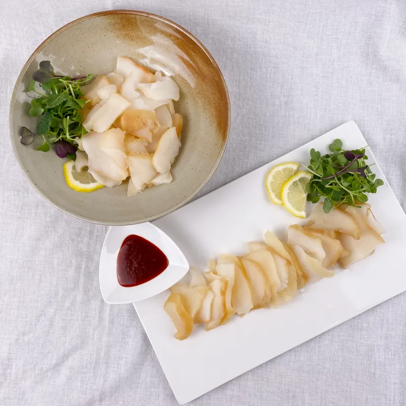 신선한 상태의 소라 살을 바로 가열, 슬라이스하여 급속 냉동한 제품으로 삶고, 까고, 손질할 필요 없이 해동 후 간편하게 사용해 보세요!