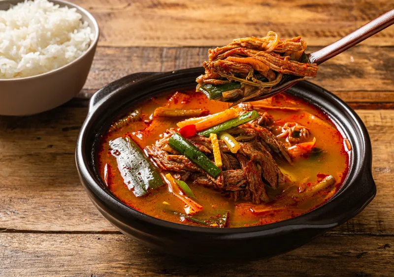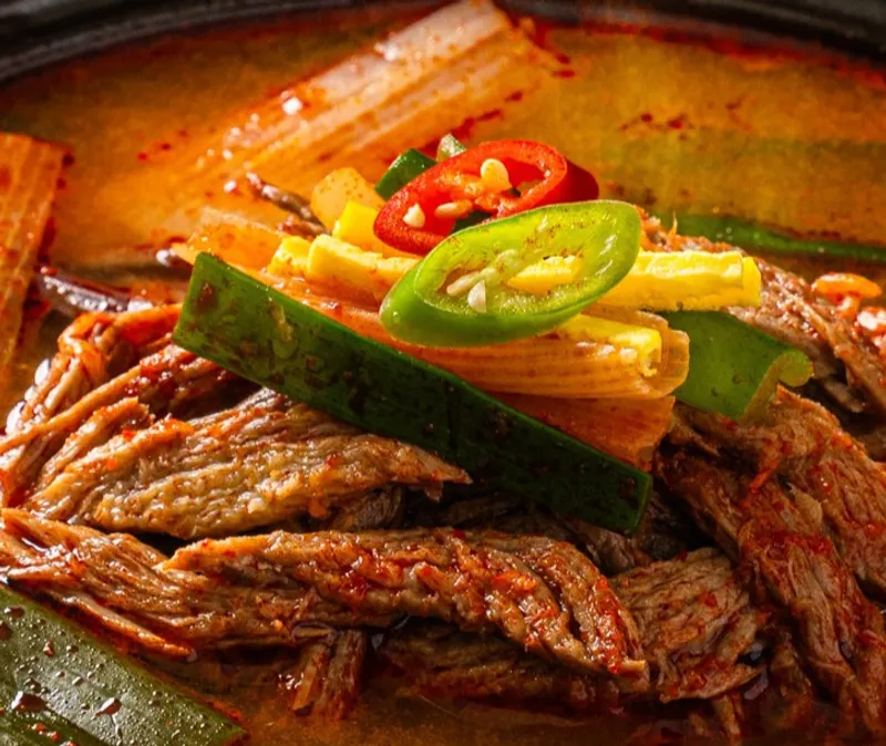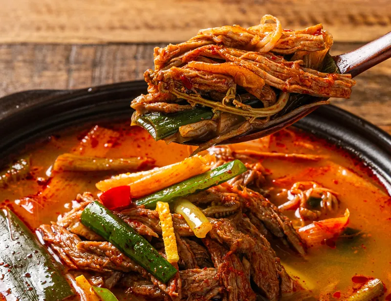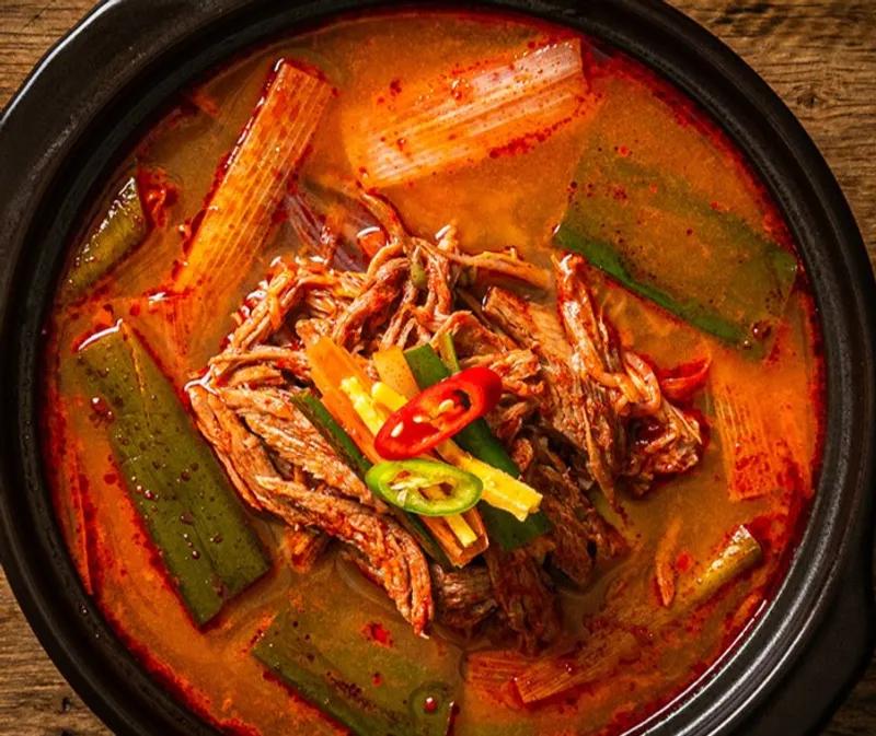 30년 맛집 '하누소'의 비결이 담긴 비법 양념으로 만든 얼큰한 육개장입니다. 깔끔하게 칼칼한 국물이 일품이에요.