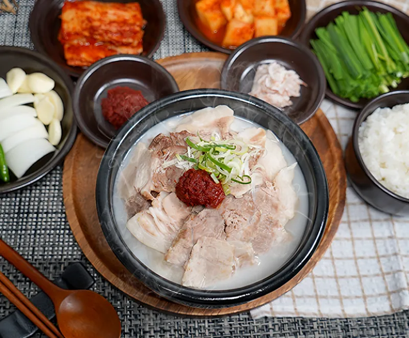 잡뼈를 넣지 않고 오직 국내산 사골 뼈만을 모아 끓여 진한 국물 맛을 자랑합니다. 불필요한 돼지기름과 불순물을 완벽하게 제거하여 잡내가 나지 않습니다.
