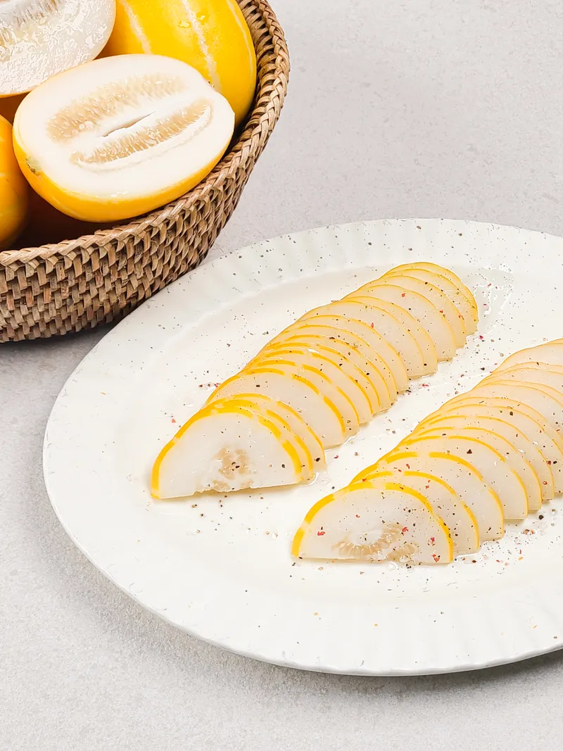 참외는 수분을 가득 머금고 있는 과일 중 하나죠. 그냥 먹어도 참 맛있지만, 다양하게 활용해 볼 수도 있는데요. 드레싱이나 소스를 곁들여 참외샐러드를 만들어 드실 수 있습니다. 또, 요거트와 우유 등과 함께 갈아내면 달콤한 참외주스를 만들 수도 있어요.