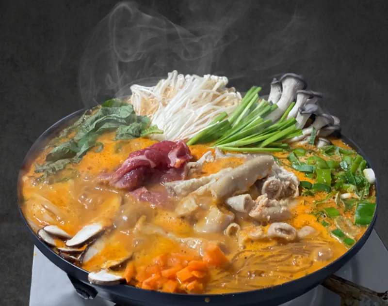 들깨와 사골액기스, 국내산 마늘로 만든 특제 양념장에 각종 채소를 아낌없이 넣었어요. 들어 있는 재료만으로도 한 냄비 가득 든든해하지요. 끓일수록 맛이 배어 진한 풍미가 살아난답니다. 깔끔하면서도 묵직한 국물이 속을 확 풀어줘요.