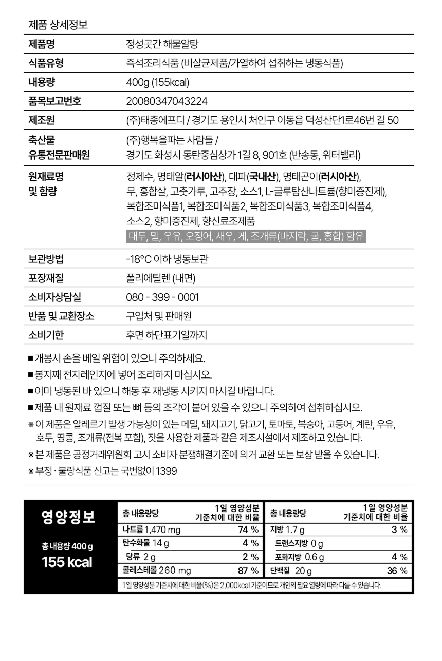 상품정보 제공고시 (원재료 및 원산지 등)