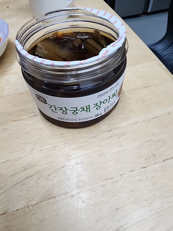 간장 궁채 장아찌 맛이 진짜 좋아요.굿 김이랑 밥위에 싸서 먹으면 밥도둑이죠 한통 이틀만에 다 먹었네요 또 구매 예정입니다 맛 있어요.굿굿굿^^~