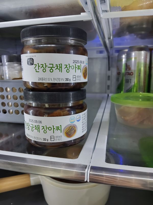 양이 350g 2개라 넉넉하고.짜지않아서 좋아요.궁채의 아작거리는 식감이 좋아요. 제입맛에는 조금 덜 달아도 좋을것ㅈ같아요.