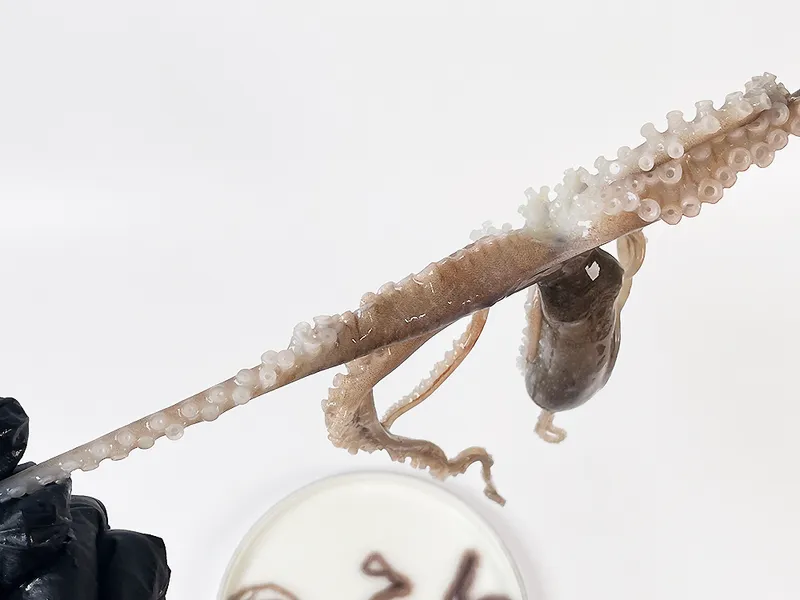 1. 낙지를 물에 씻지 마시고 키친타월로 쭉 훑어서 물기를 닦아주세요