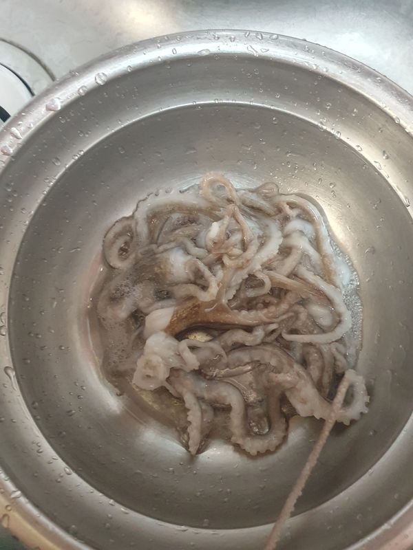낙지가 많이 작아요. 맵지 않게 양념해서 볶아 먹었어요. 연하고 맛나요