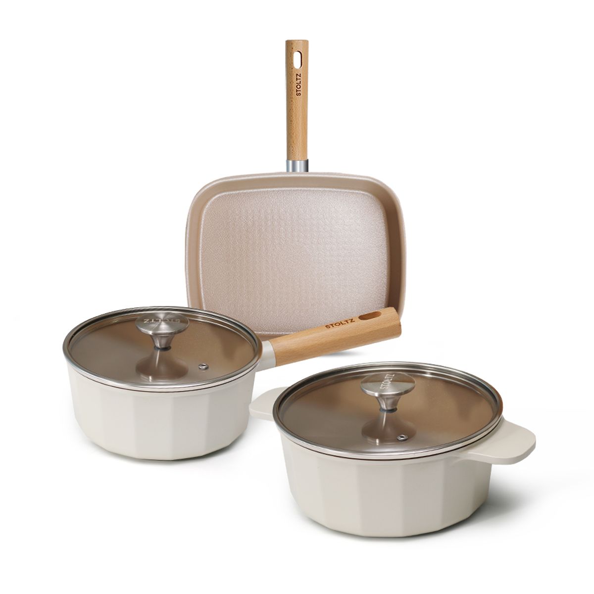 크림 냄비 프라이팬 IH 인덕션 가성비 주방 3종 세트 (편수18+양수20+사각팬28)