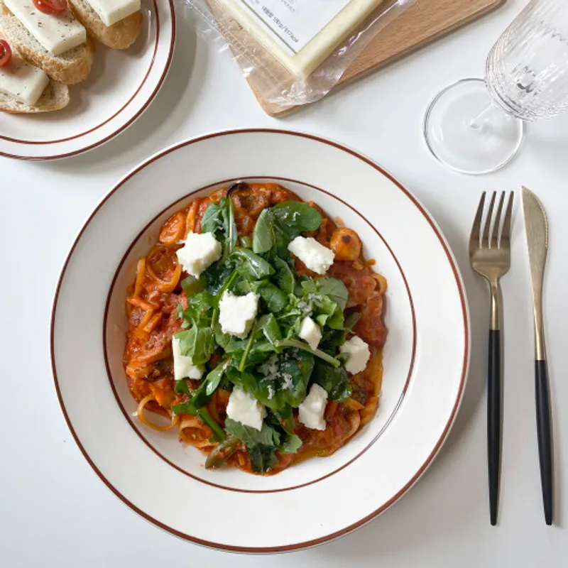지금까지 드셨던 크림처럼 부드러운 리코타치즈와는 달라요. 살짝 단단한 질감에서 오는 묵직함이 더해졌답니다. 씹을수록 고소하고 담백한 맛이 느껴지고 짜지 않아 누구나 부담 없이 즐겨 드실 수 있어요.