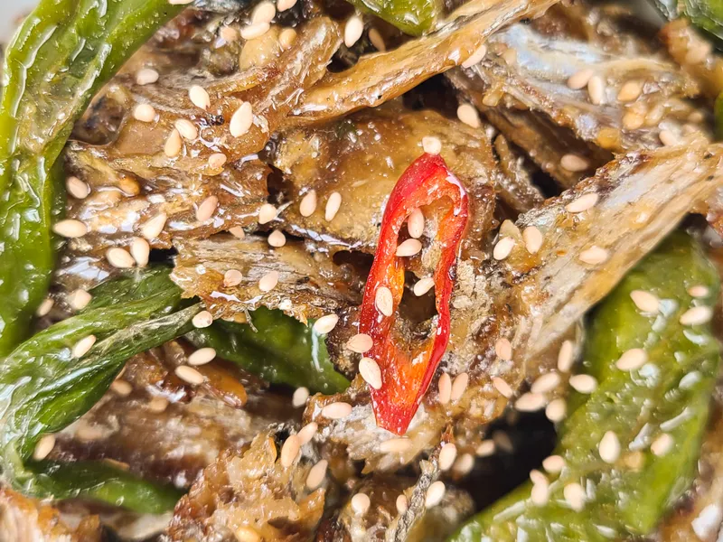 청양 고추로 매콤함까지 잡은 풀치 볶음입니다. 고소하고 짭조름한 맛에 자꾸 손이 가요는 맛이에요.