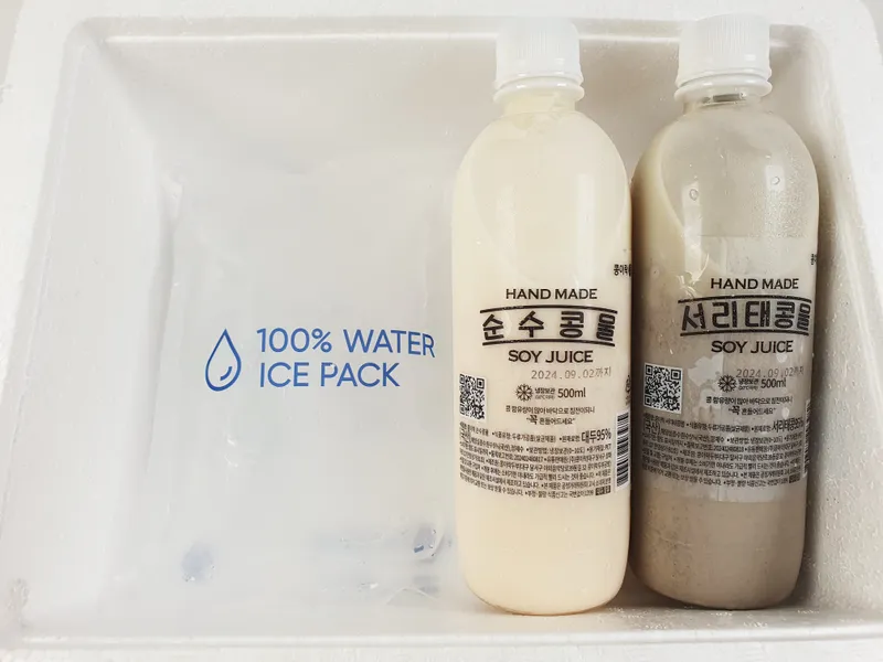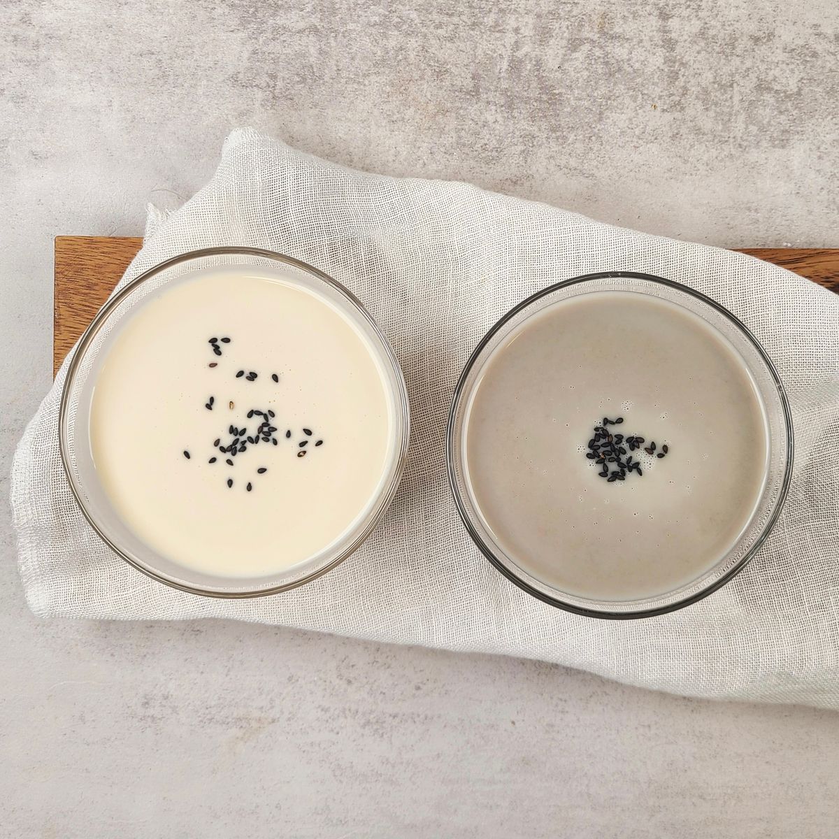 국내산 콩으로 만든 두 종류의 콩물을 만나보세요. 대두와 서리태로 만든 콩물로 진한 구수함이 가득 느껴진답니다. 적당한 염도로 맞춰 더욱 담백하게 즐길 수 있어요!