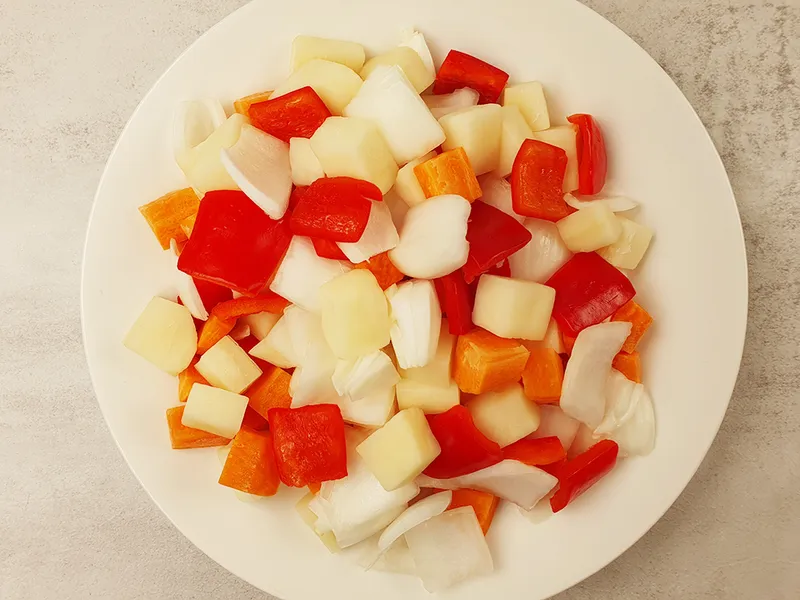 먹음직한 색을 더할 파프리카와 당근, 달큰한 맛이 좋은 양파, 포슬포슬한 감자까지. 준비한 채소는 모두 믿고 먹는 국내산입니다. 신선함 가득 머금은 채소의 풍미를 경험해 보세요.