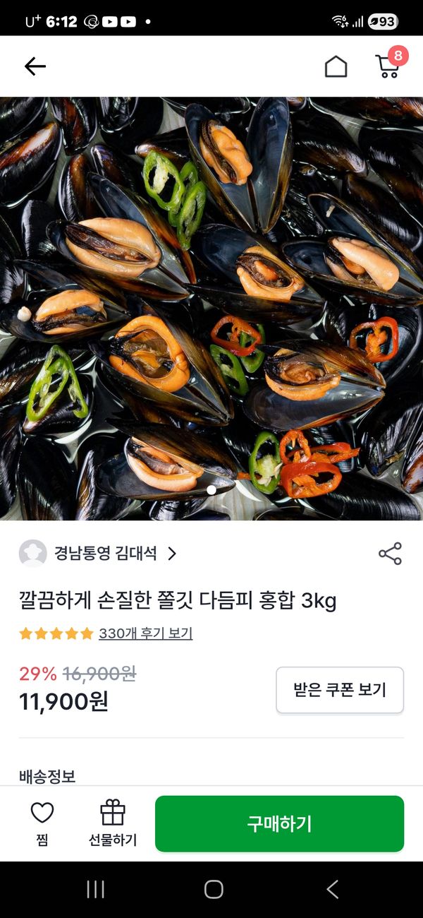 홍합이 너무 깨끗해요. 그래도 30분 해금했어요. 아쉬워요ㅠㅠ 판매자님 제가 어제 재주문했는데요. 이번 거는 조금 컸으면 좋겠어요 부탁드려요.