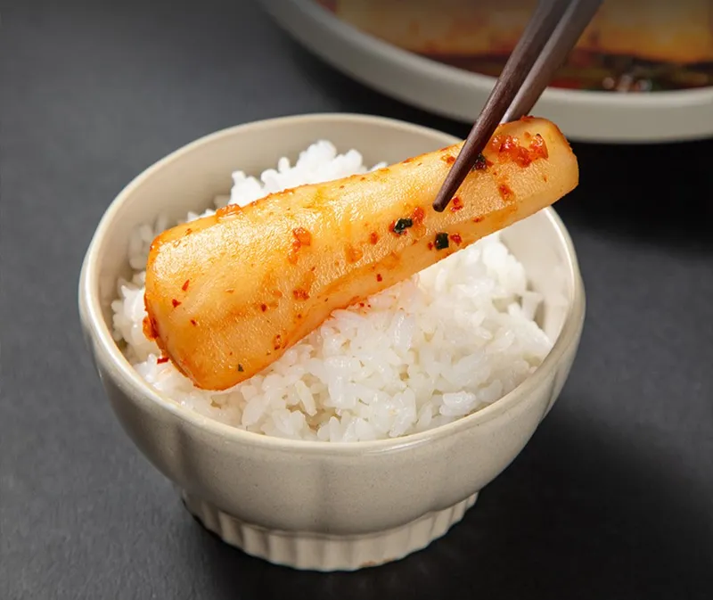 아낌 없이 좋은 품질의 재료를 듬뿍 넣어 더욱 시원한 감칠맛을 낸 총각김치입니다. 익을수록 더욱 깊어지는 총각김치 맛이 일품이죠. 한입 베어 물면 아삭~아삭한 식감과 함께 시원한 풍미가 입안을 가득 채워준답니다.