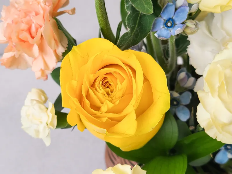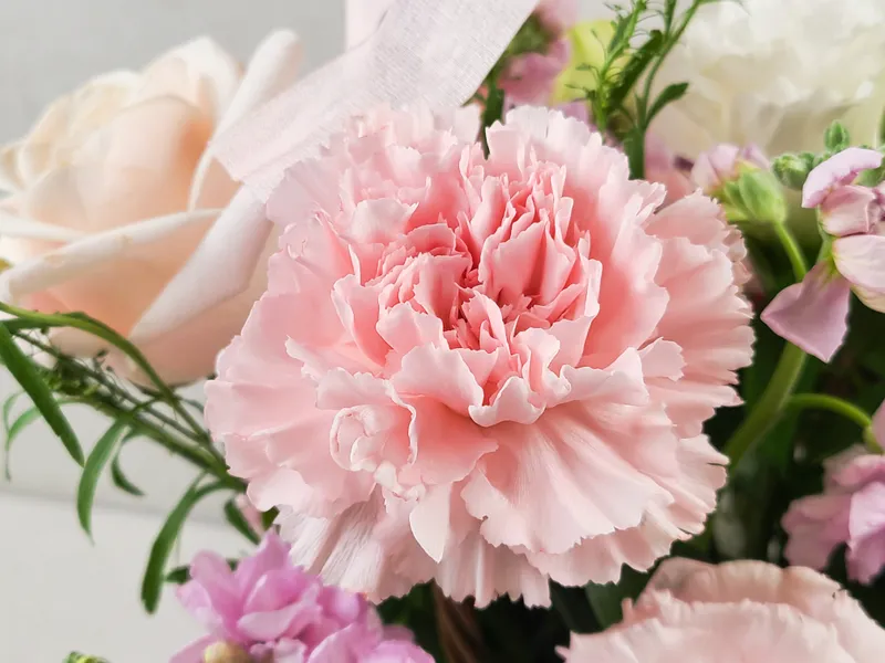 꽃바구니에 사용되는 수입 장미와 카네이션은 콜롬비아산으로 사계절 내내 일정한 품질을 유지합니다. 화형이 크고 꽃 수명이 길어 고급 꽃다발에 사용되는 고품질 생화예요. 이 외에도 주 3회 경매를 통해 국산 꽃과 소재를 공급받아 전체 꽃다발을 풍성하게 구성하고 있습니다.