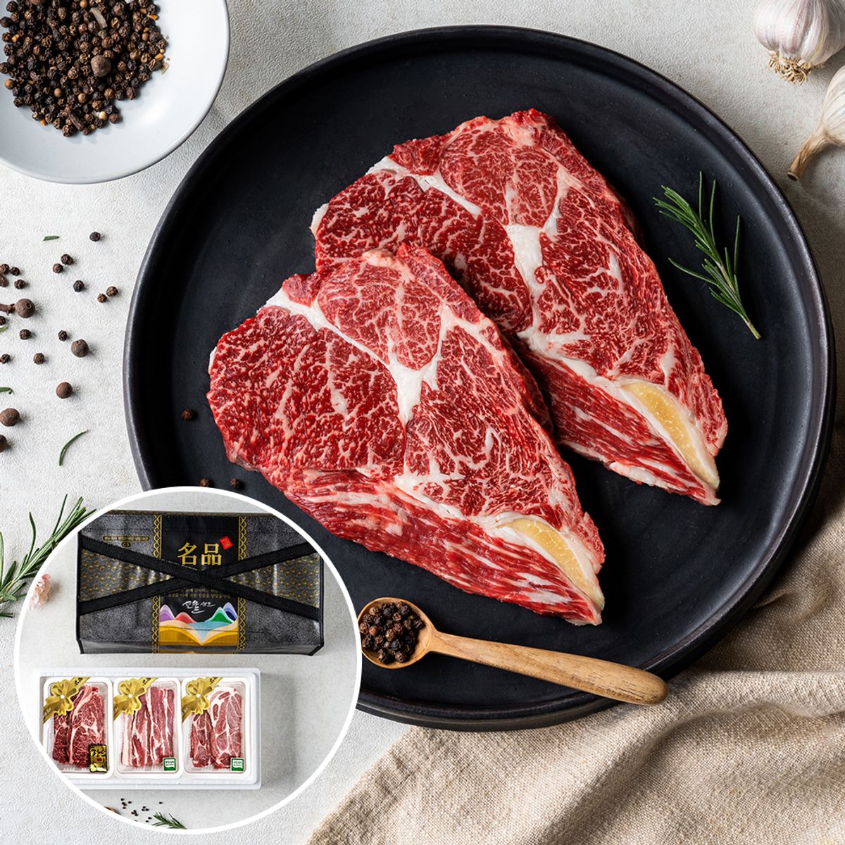 구성. 1등급 이상의 한우암소 꽃등심 300g