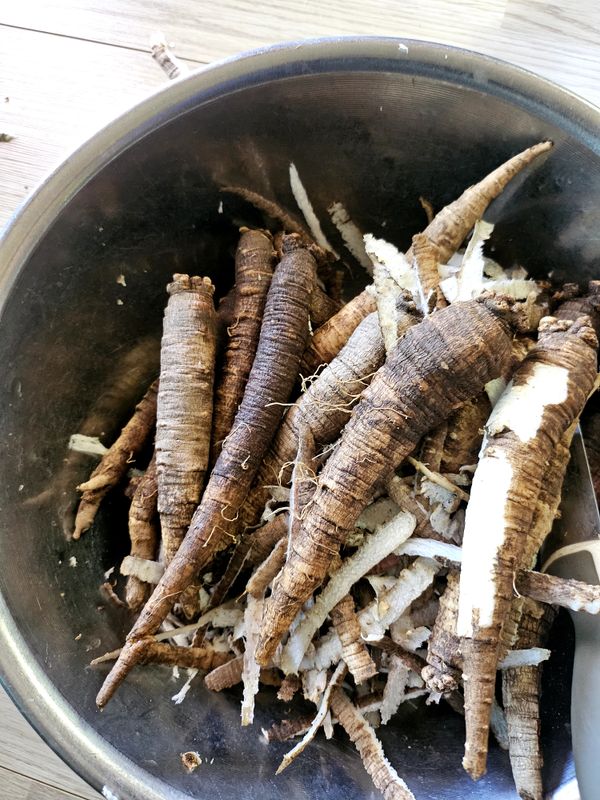 껍질까보니 심이많이있고 더덕향도 별로나지않습니다 상한것도 좀있습니다 우리시어머니께 많이혼났습니다