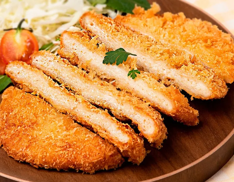 [튀김기] 170~180℃로 가열된 식용유에 냉동상태의 치킨까스를 넣고 약 5-6분간 노릇노릇해질 때까지 조리해 주세요. *해동되어 물기가 생긴 제품을 끓는 기름에 넣으면 위험하니 조심해 주세요. [프라이팬] 기름을 넉넉히 부어 가열한 프라이팬에 냉동상태의 치킨까스를 넣고 중약불에서 약 5-6분간 뒤집어가며 노릇노릇하게 조리해 주세요.
