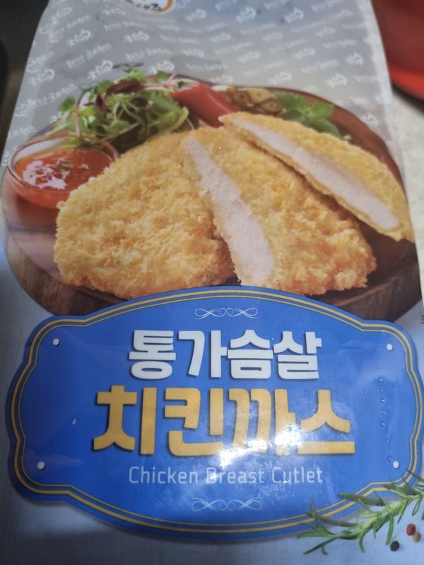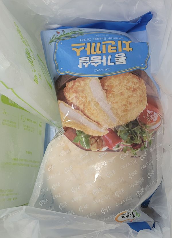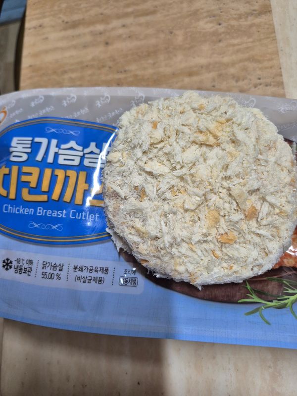 빠른 배송은 좋았는데 날씨가 더워서 얼음팩 두개나 있었지만 반 정도 녹아서 왔더라구요. 그래서인지 제품도 어느정도? 녹아서인지 찌그러져 있어서 떼어냈더니 부서져서 모양이 엉망이 되었습니다. 이점이 배송의 아쉬운 점이었네요. 맛은 통가슴살 치킨까스라서인지 살이 부드러워 먹기에 부드러워 밥 없이 이것만 모양이 이그러진 세 조각을 한번에 해치웠네요. ㅋㅋ 이번에 급히 에어후라이에 해 먹었지만 위아래 각각 180도에 12분정도 잘 구워져 잘 먹었습니다.