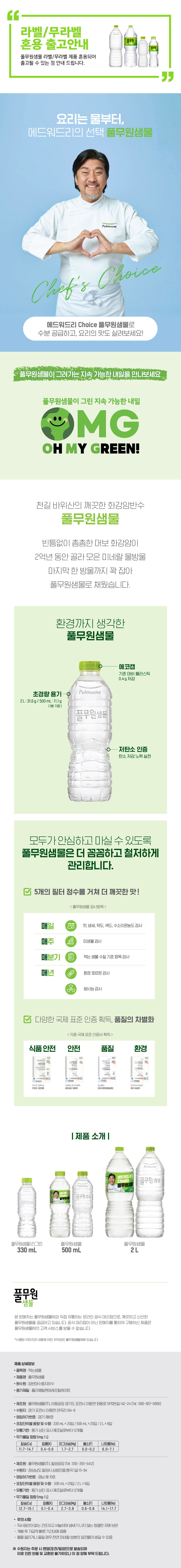 [G] 풀무원샘물 리그린 무라벨 생수 330mL X 20병