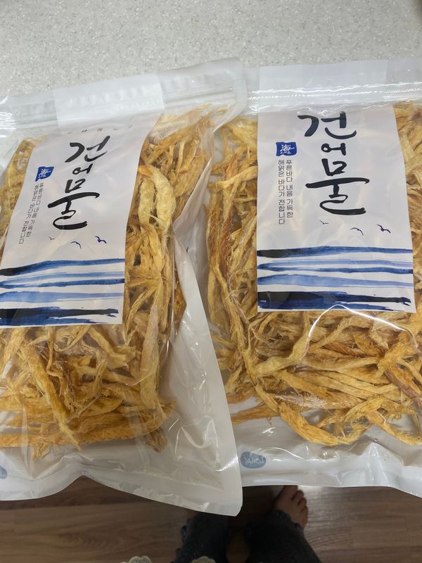 황태포다섯마리 찢어놓은포 두개다 구입햇는데 맥주안주 또는 참기름볶아미역국 아주진한국물 줌마분들께 적극추천해요~^^