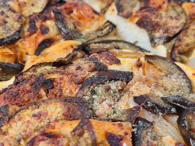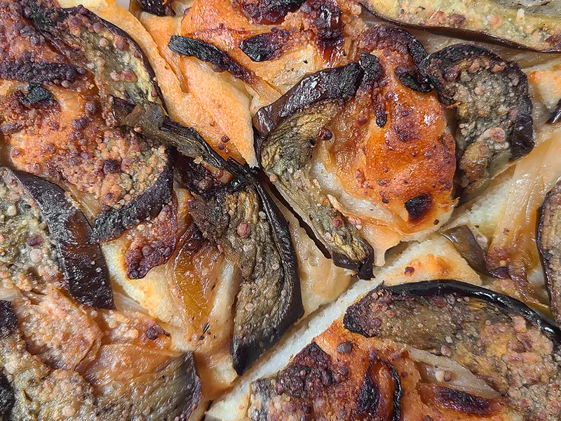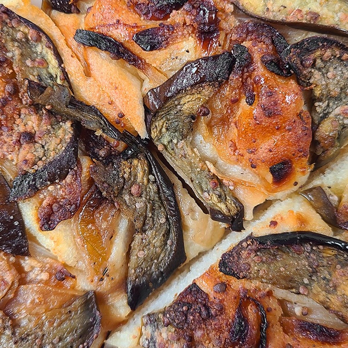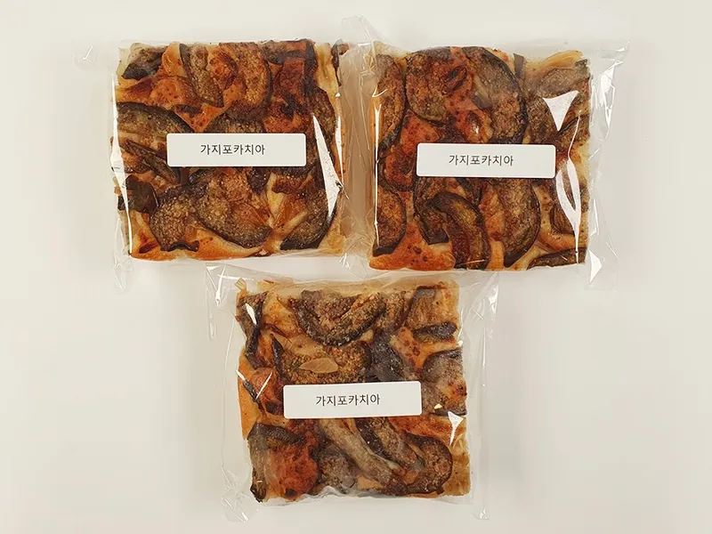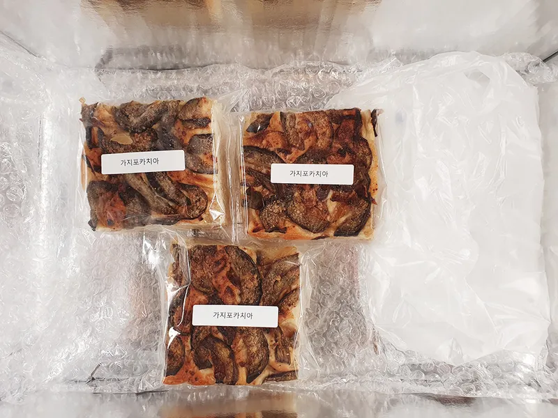 촉촉한 국내산 가지, 아삭한 국내산 양파, 고소한 파마산 치즈가루가 한입 가득 들어와요. 아낌없이 올렸답니다! 토핑의 풍부한 맛이 부드럽게 쫄깃하면서 담백한 포카치아 빵과 정말 잘 어우러져요. 조청의 은은한 달콤함까지 더했어요.