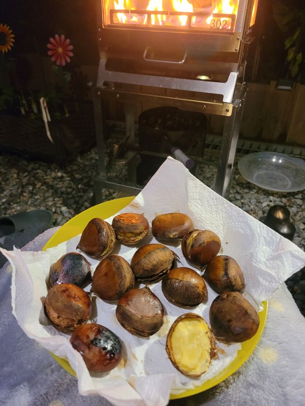 알이 토실하고 밤 상태 좋습니다. 오늘 난로에 구워먹었는데,,, 아직 단맛이 많이 올라오진 않은것 같아요. 김치냉장고에 좀 더 두었다 먹어야할까봐요.