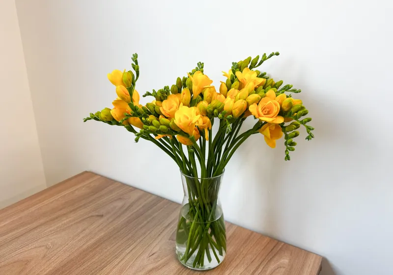 프리지아는 적절한 관리로 오래도록 신선함을 유지할 수 있어요. 물을 자주 갈아주고 줄기를 다시 잘라주면 더 오랫동안 향기를 즐길 수 있답니다.