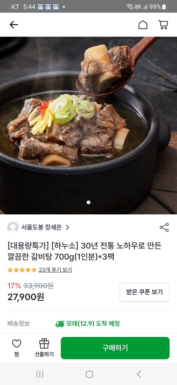 옵션: [하누소] 갈비탕 700g(1인분)*3팩