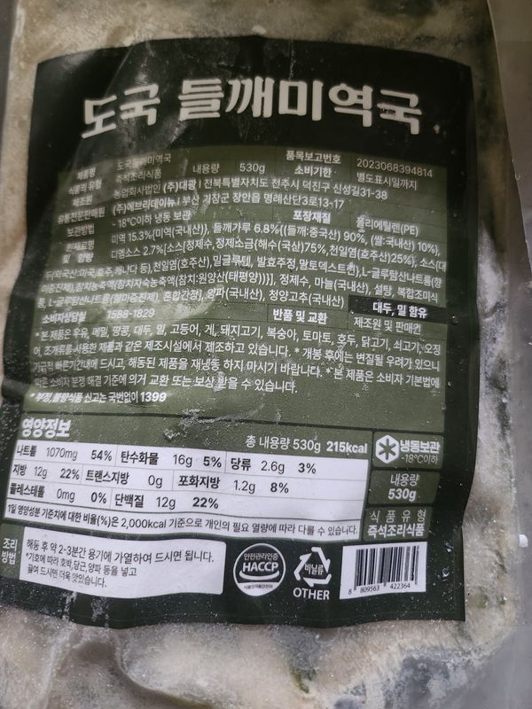 옵션: 도국 들깨 미역국 530g*2팩
