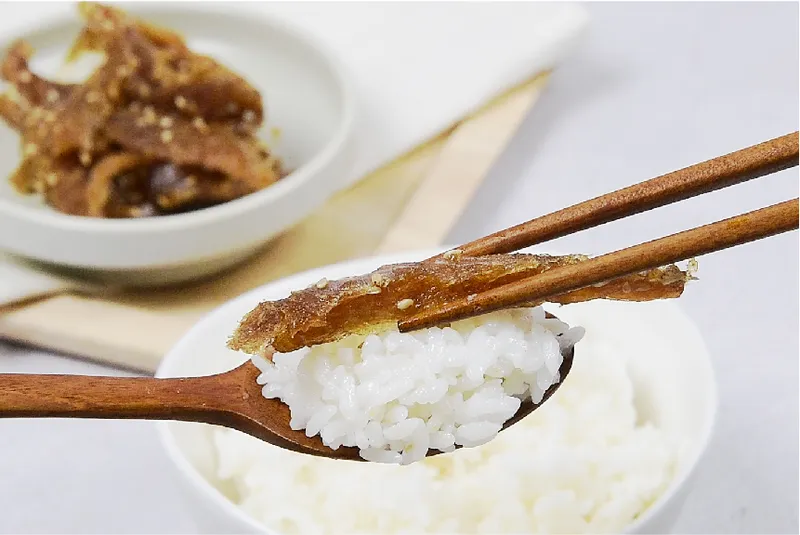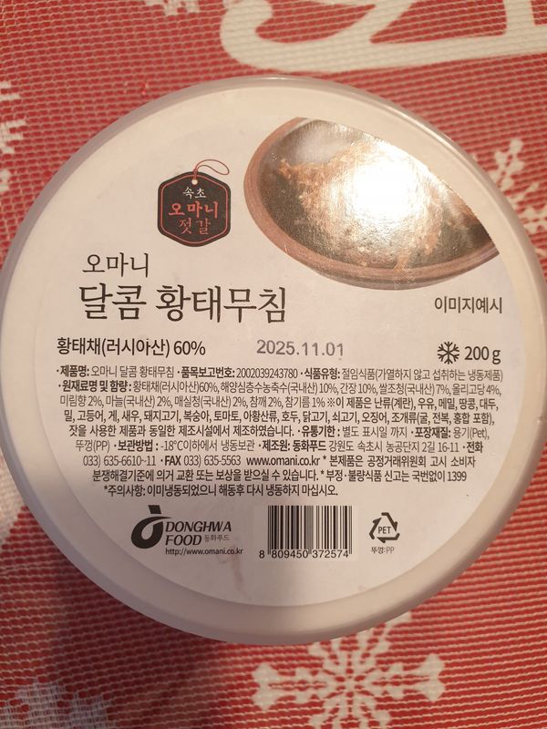 달콤한 비법 양념으로 무쳐서 정말 맛있어요. 황태가 어려운 아이들에게도 '달콤한' 맛으로 인기 만점일 거예요. 밥에 얹어 먹으면 쫄깃함에 기가 막힙니다~