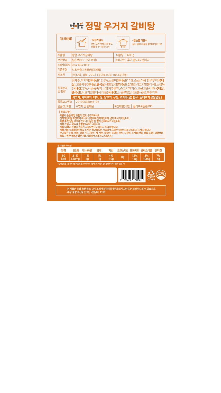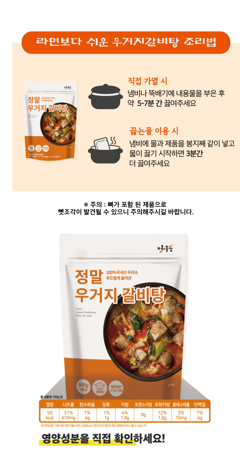 I[정마을/실온보관] 국내산 소고기 듬뿍 진한 우거지갈비탕 600g x 3팩