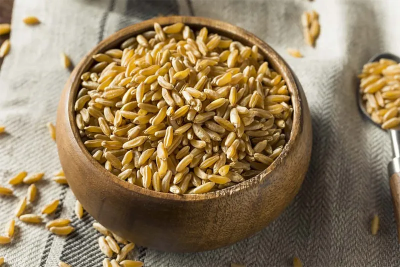고대 원시 곡물 중 하나인 카무트는 겉모습이 현미와 비슷하지만 조금 더 노란빛을 띄고 있습니다. 부드럽고 쫀득한 식감을 자랑하며 고소한 맛을 느끼실 수 있어요.