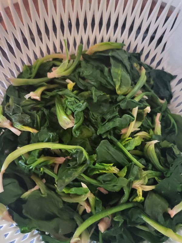 시금치가 신선하고 데쳐서 무치니. 달콤합니다 반은 냉동실로~
