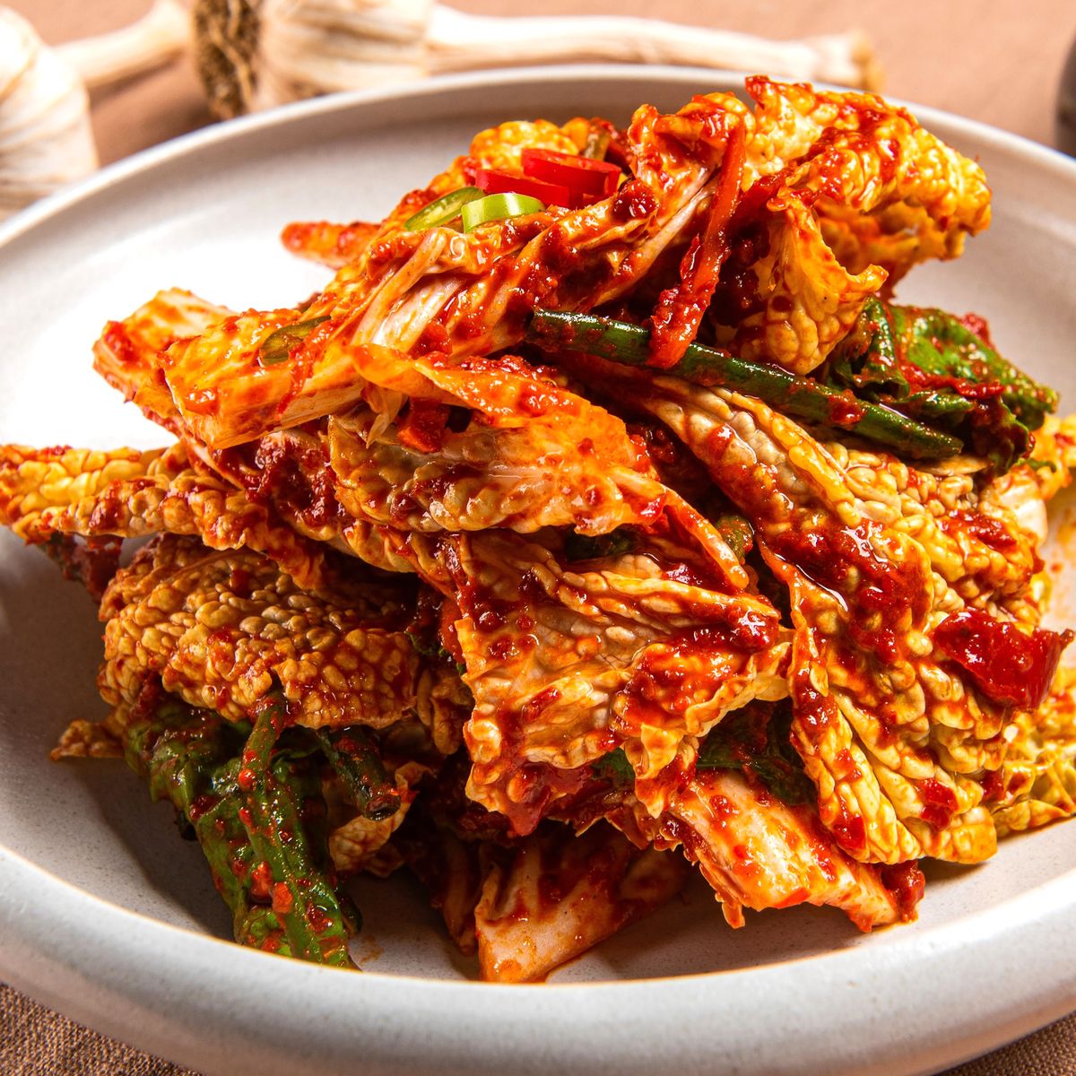 짜지 않으면서 신선한 맛이 일품인 겉절이에요. 비법육수를 사용한 다시마 육수로 깊은 맛을 내어 각종 조미료 없이도 최고의 맛과 품질을 자랑합니다.