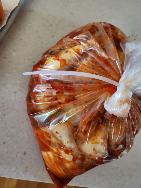 김치는 받는 즉시 김치통에 옮겨 담아 주세요. 비닐봉지에 그대로 보관하시면 김치가 숨을 쉬지 못해 맛있게 익을 수 없습니다.