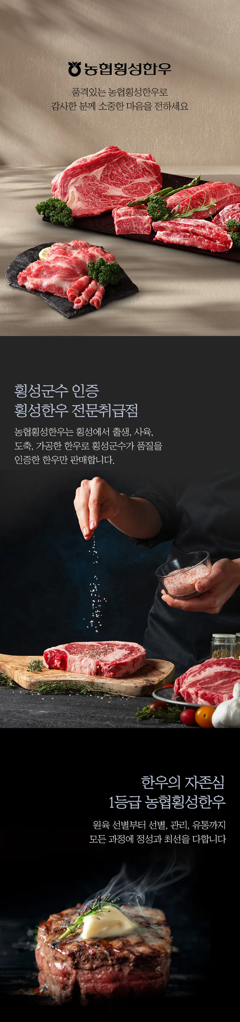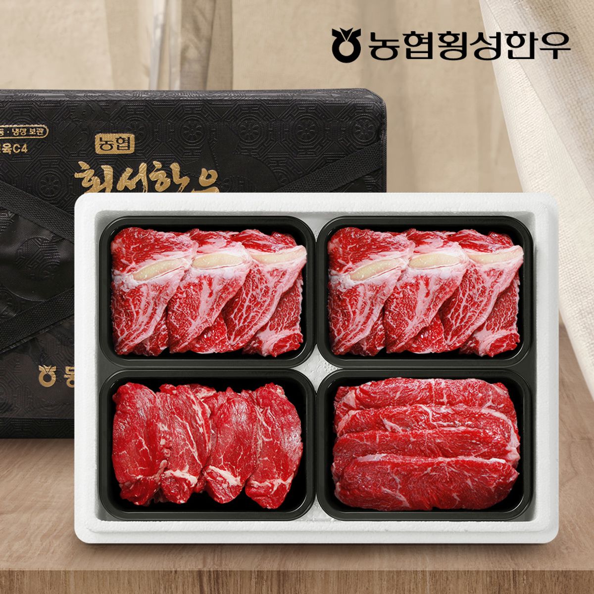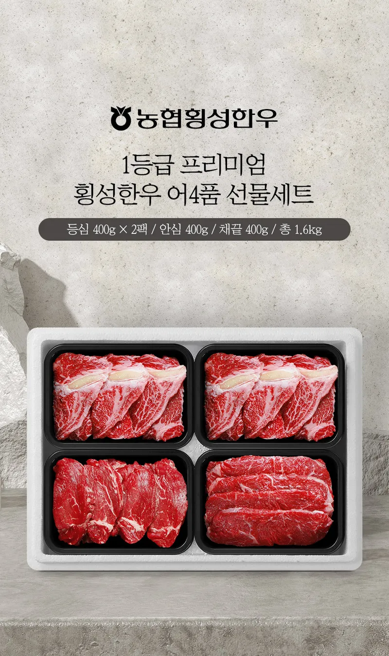 [농협횡성한우] 1등급 프리미엄 횡성한우 어4품 선물세트 1.6kg (등심+등심+안심+채끝)